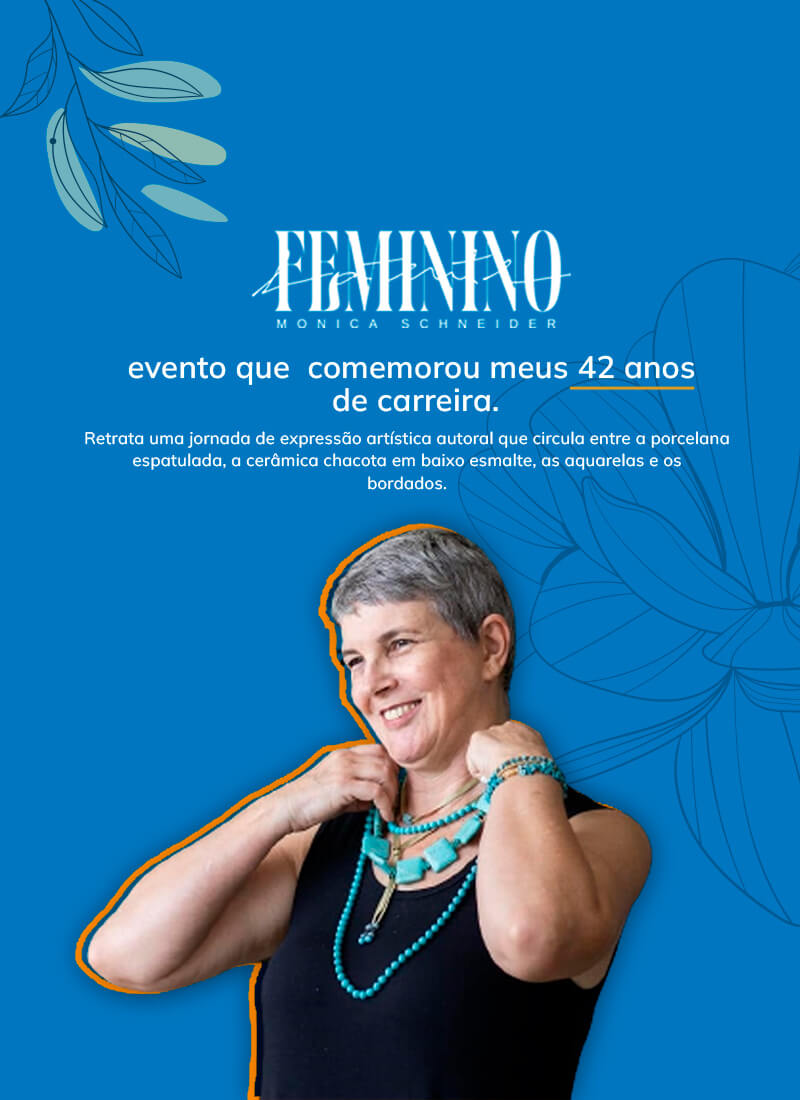 FEMININO LATENTE - VIDA é a exposição comemorativa aos 42 anos de carreira artística de Monica Mambrini Schneider, cujos trabalhos integram espaços de arte, cultura, arquitetura e decoração sergipanos. A abertura acontece no dia 14 de junho, sexta-feira, na Galeria de Artes Vesta Viana, em São Cristóvão - cidade que faz parte da sua história desde 1982 e que a inspira criativamente desde então.